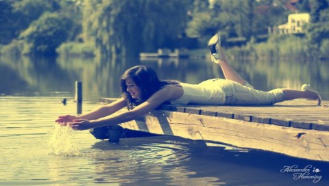 Обои для PSP » Девушки » Игра с водой