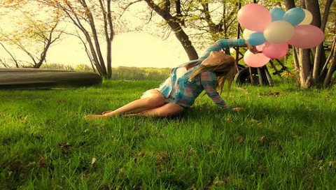 Обои для PSP » Девушки » Воздушные шарики