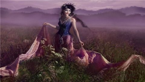 Стоит в поле в красивом платье
