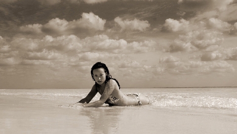 Обои для PSP » Девушки » Девушка на берегу