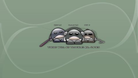 Обои для PSP » Логотипы  »  Linux » Линукс против Бил Гейтс