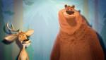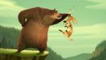 Медведь держит лося в воздухе