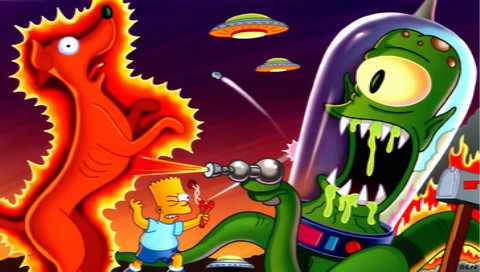 Обои для PSP » Мультфильмы  »  Симпсоны » Марсианин и собачка симпсонов