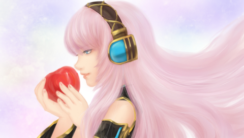 Обои для PSP » Музыка  »  Vocaloids » Мегурине Лука держит яблоко