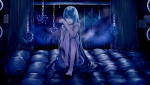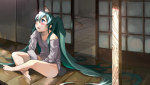 Хацунэ Мику сидит на кровати