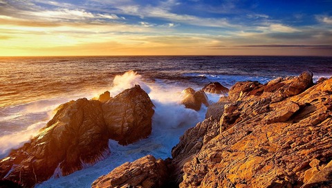 Обои для PSP » Природа » Волны обмывают скалы