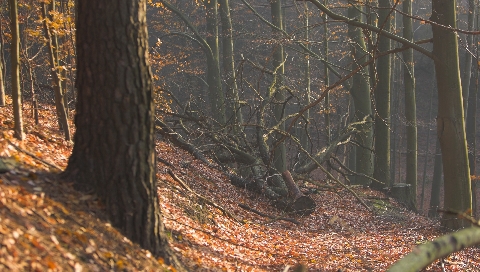 Овраг усыпанный листьями