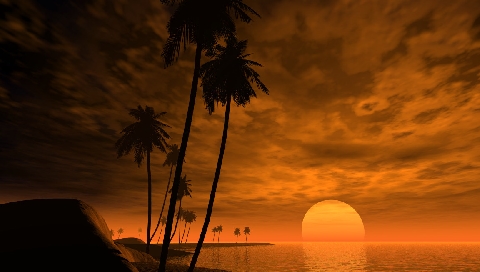 Обои для PSP » Природа  »  Пейзажи » Солнце скрывается за водой