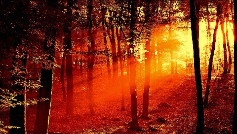 Солнце сквозь осенний лес