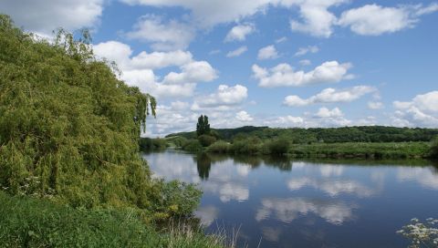 Гладь озера на фоне неба