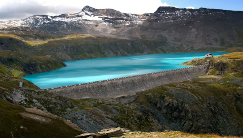 Большая дамба на фоне гор