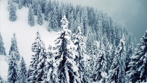 Деревья усыпанные снегом