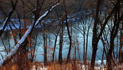 Обои для PSP » Природа  »  Пейзажи » Первый снег. Деревья. Озеро