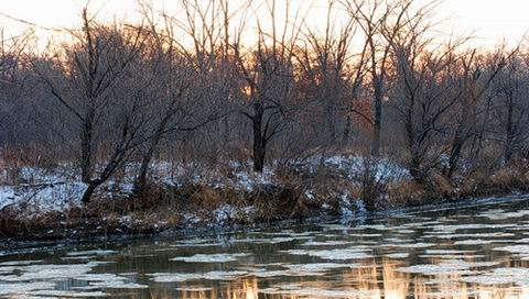 Обои для PSP » Природа  »  Пейзажи » Первый снег. Озеро. Деревья