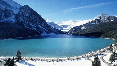Вода и горы в снегу