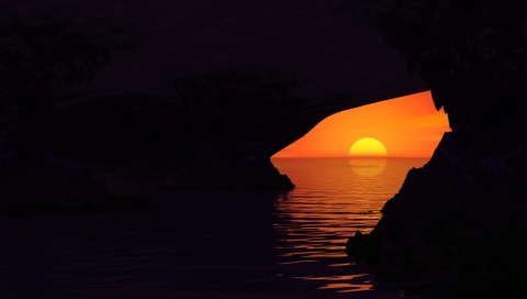 Обои для PSP » Природа  »  Пейзажи » Закат моря в пещере