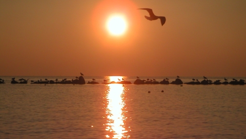 Обои для PSP » Природа  »  Пейзажи » Закат и чайка