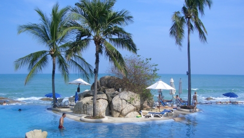 Обои для PSP » Природа  »  Пейзажи » Пальмы на острове