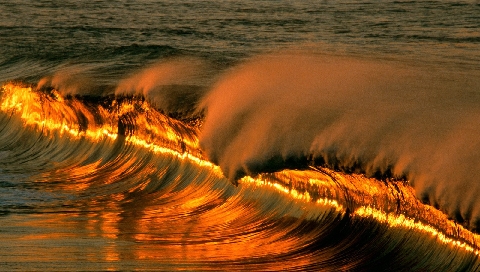 Обои для PSP » Природа  »  Пейзажи » Волна на закате солнца