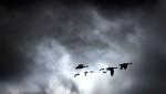 Улетающий косяк птиц в темном небе