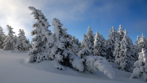 Елки в снегу на склоне