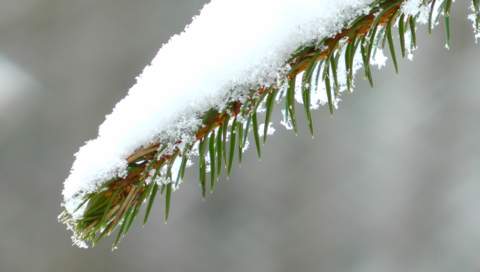 Веточка ёлки зимой