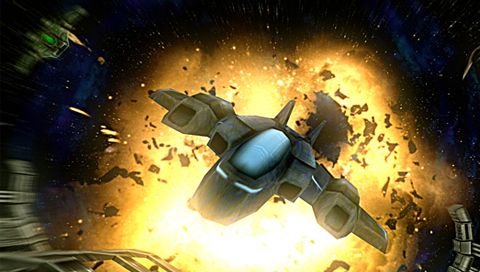 Обои для PSP » Космос » Корабль улетает от взрыва