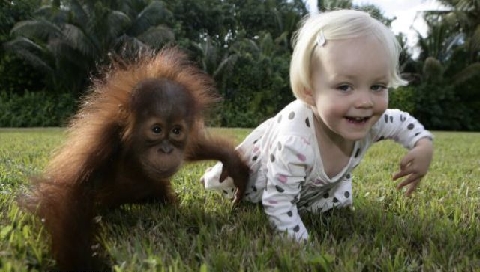 Обои для PSP » Смешное » Ребенок с обезьянкой