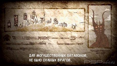 Размеренная жизнь, где все идет своим чередом и строго по плану, скучна и монотонна. Невозможно ощутить всю радость бытия без толики безумства. Patapon - это настоящее полотно авангардиста - необычное, впечатляющее, запоминающееся и красочное. Но готовы ли вы к инновационным идеям, не похожим ни на что из ранее виденного?Племя Патапонов долгое время жило в изгнании. Коварные захватчики Зиготоны вытеснили несчастных на самые границы их былых владений. Но маленькие забавные человечки твердо знают: однажды придет время начать войну за утраченную власть и свободу. Ведомые грозным боем барабанов, настоящим громом будущих сражений, сотни крошечных храбрецов отправятся на войну. Нужно лишь дождаться легендарного героя, который поднимет всех на борьбу. Быть может, вы и есть Избранный?