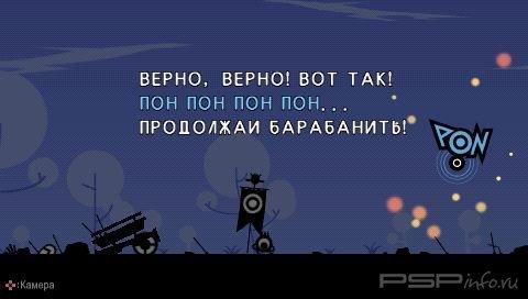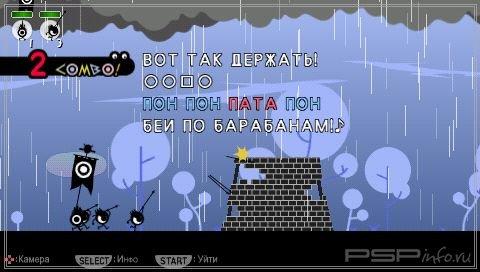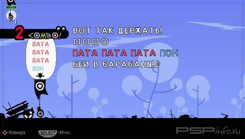 Звуки как оружие. Патапоны не понимают криков и обычных приказов. Чтобы командовать ими, необходимо освоить язык барабанов, который поднимет маленьких храбрецов на войну. Используйте шесть различных ритмов, дабы заставить солдат маршировать, сражаться и даже колдовать. Смешивайте разные последовательности барабанных дробей в сложную какофонию для повышения характеристик собственного войска.