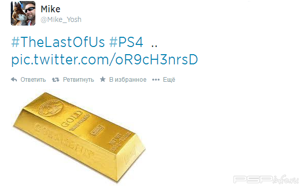 Главный аниматор Naughty Dog Майк Йош (Mike Yosh) в своей Twitter подтвердил, что переиздание The Last of Us для PS4 официально ушло на "золото", т.е. разработка игры окончена и она готова к выпуску.